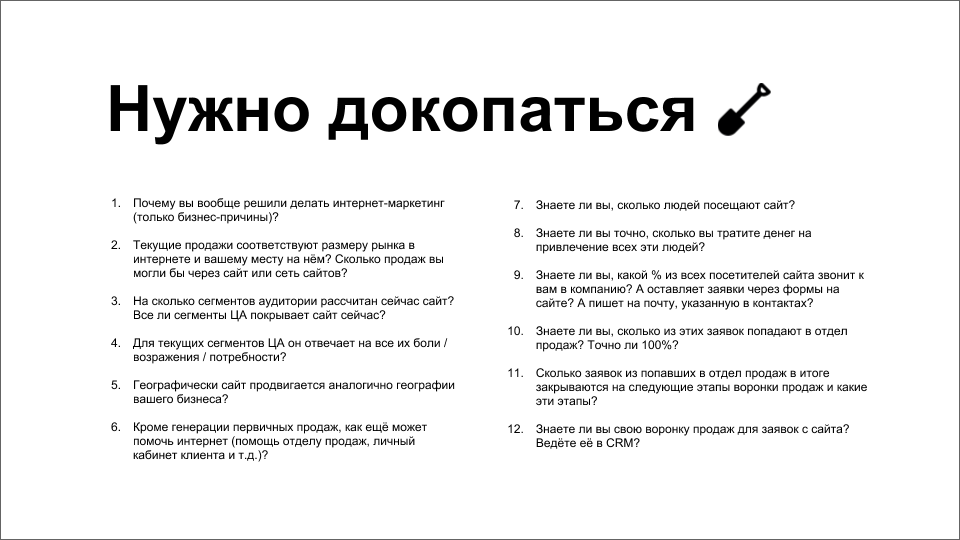 - Продумываем, как настроить аналитику. Позже с ее помощью оценим, как исполняется план работ.