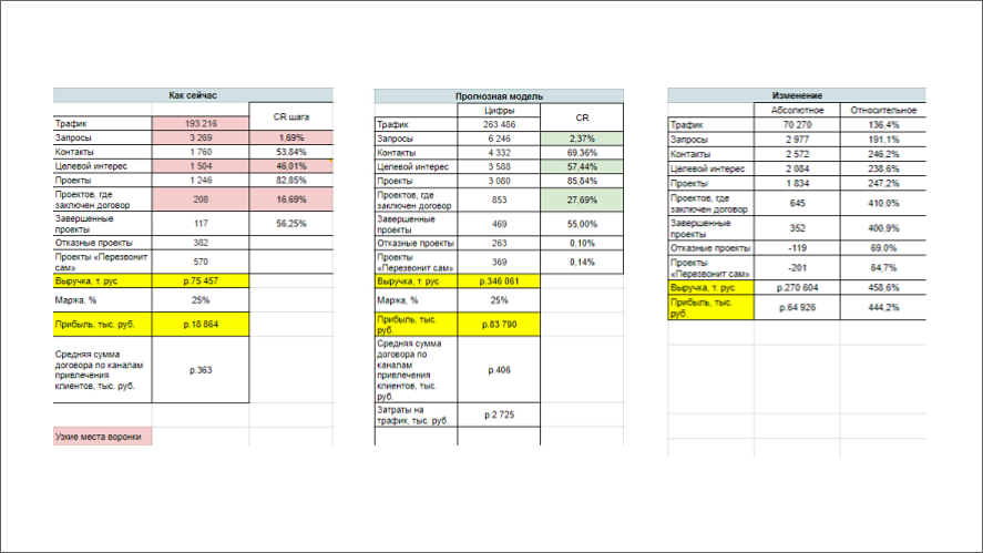 - Составляем финансовый прогноз окупаемости планируемых работ. Отсекаем лишнее.