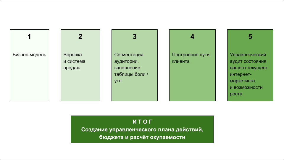 - Накладываем маркетинговые данные на схему, подбираем инструменты интернет-маркетинга.